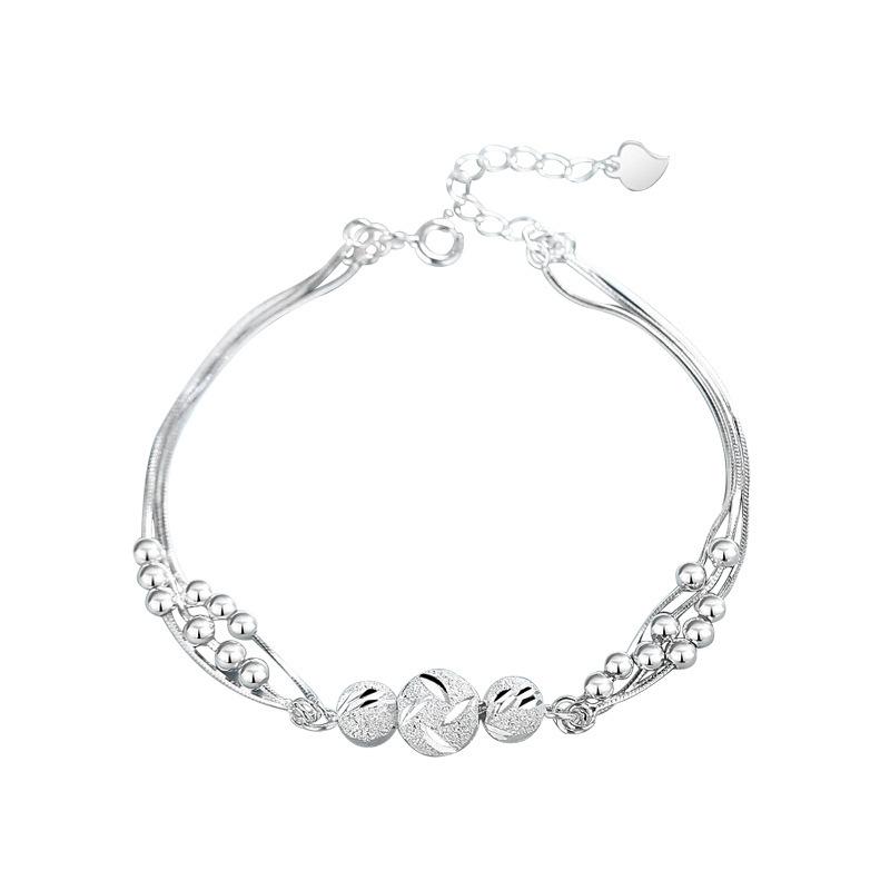 Silver Plated Minimalist Layered Bracelet with Lucky Beads Unique Design Gift for Her