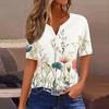 Γυναικείο T-Shirt με Πρίνα, Κουμπί, Κοντό Μανίκι, Καθημερινό, Μόδα Σαββατοκύριακου, Βασικό, V-Λαιμόκοψη, Κανονικό Τοπ