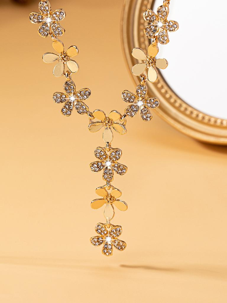 Spring And Summer 18K Full Diamond Flower Temperament Stacked Double Row Necklace Women'S Fashion Jewelry
