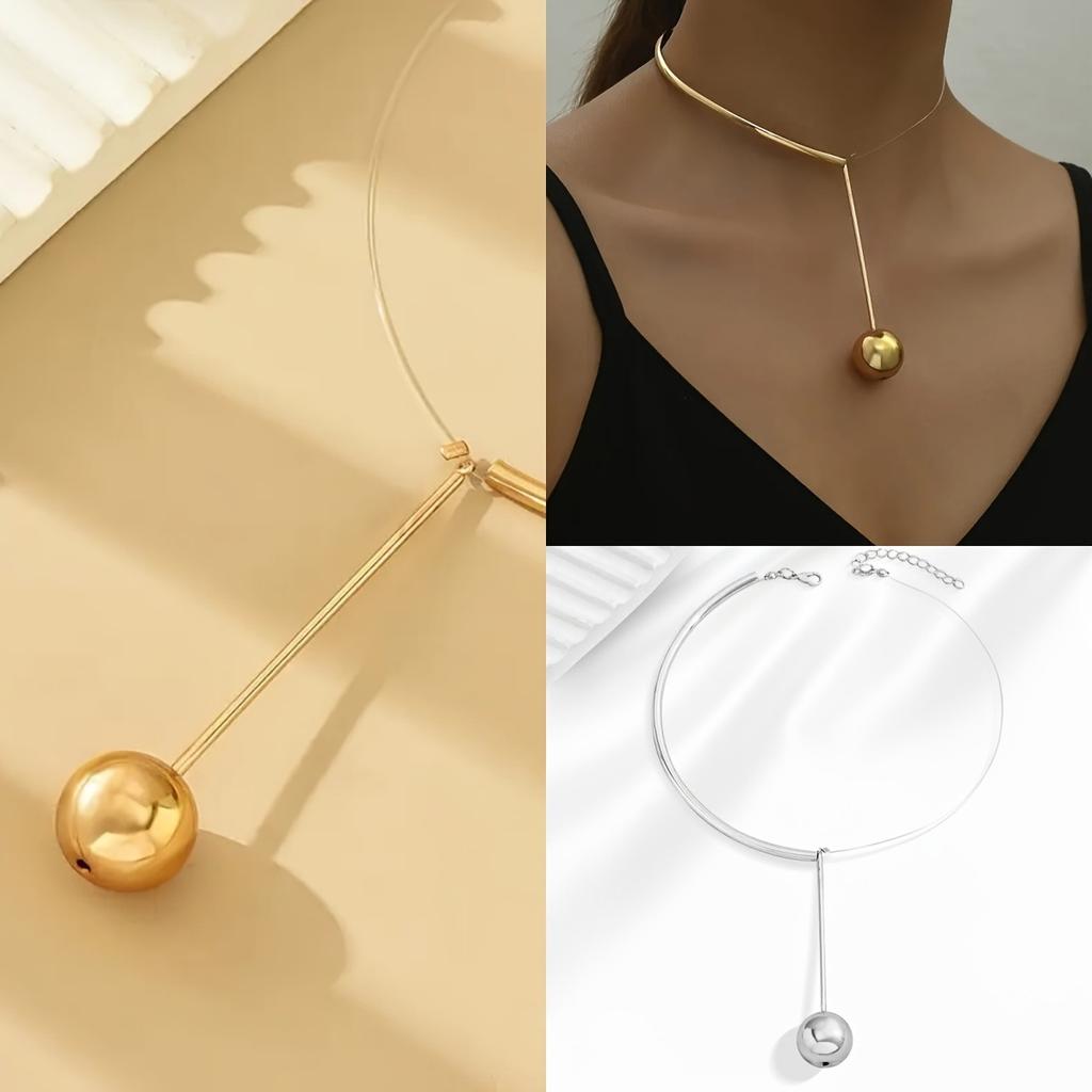 A Personalized Light Luxury Design Double Collar Invisible Long Circle Pendant Necklace Creative Fashion Lady