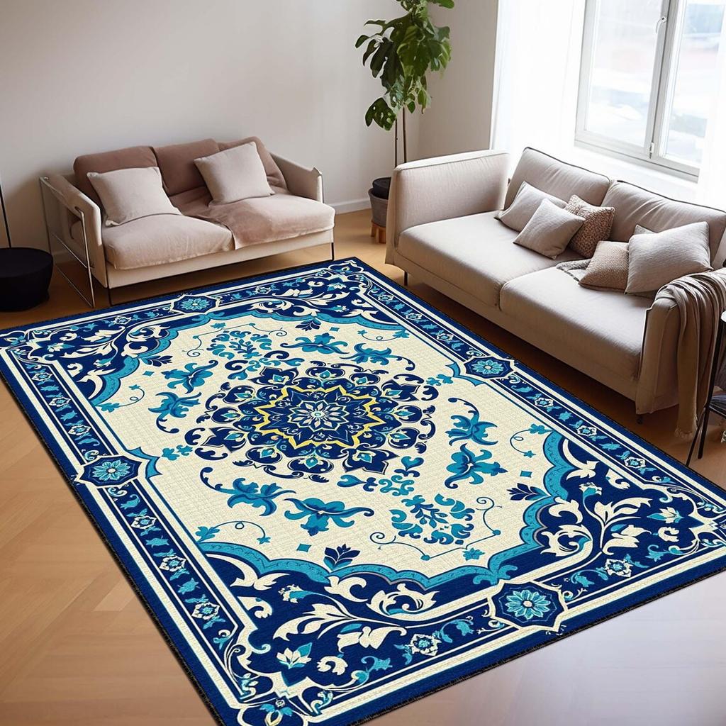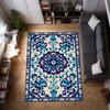 Blue Turkish Kilim Art Deco Rug Classic Oriental Carpet, Boho Woven Floor Mat for Vintage, Eclectic, Mediterranean Decor, Rug