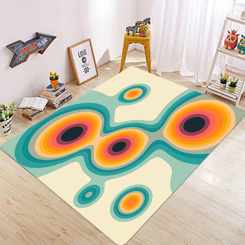 Color Block Wave Geometric Rug Durable Floor Mat for Living Room Playroom Modern Home Decor Carpet