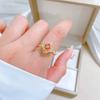 Real Gold Light Luxury Square Flower Ring Opening Adjustable Simple Jewelry Japanese Ring Couple Ring