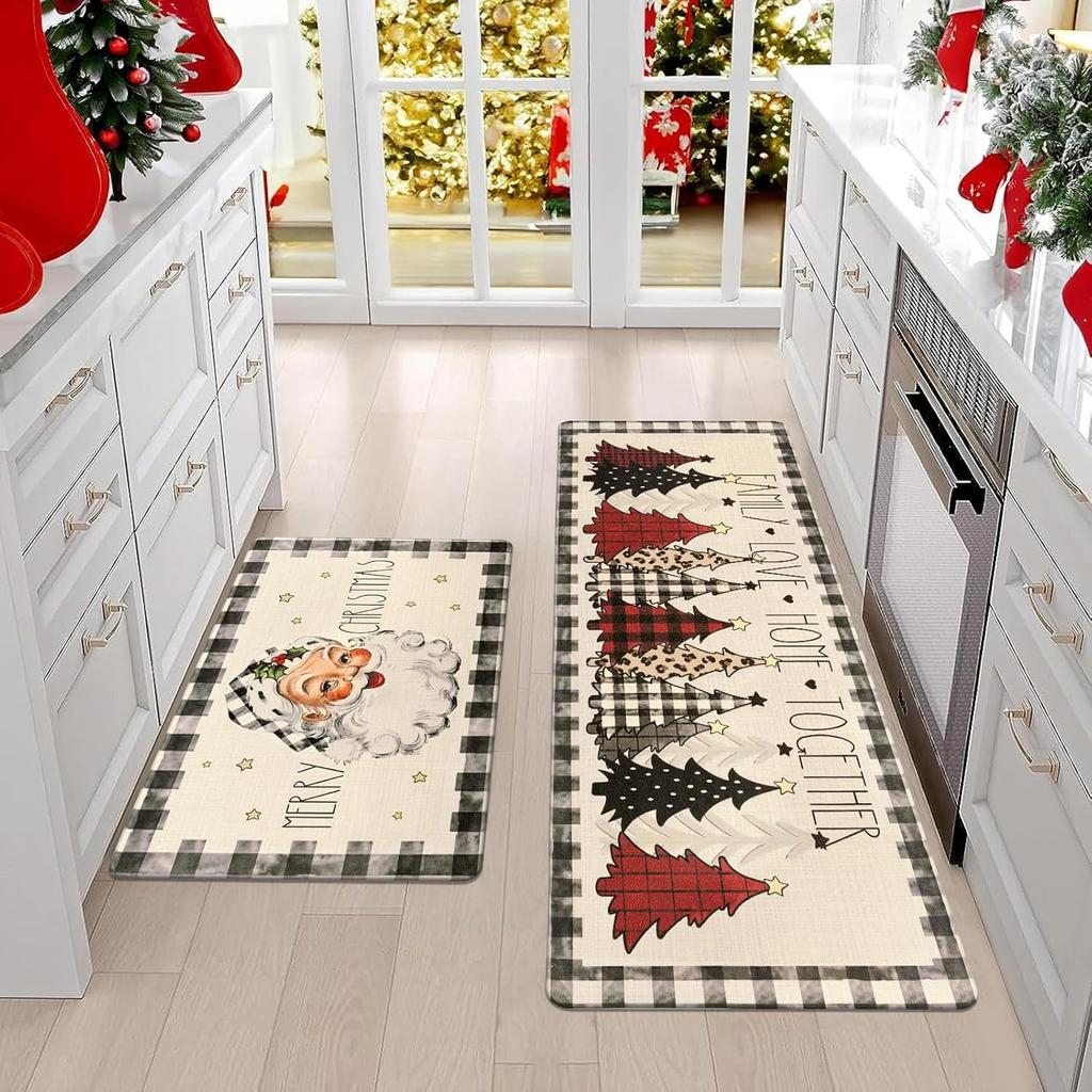 2pcs Santa Claus Kitchen Floor Mats Entrance Welcome Door Mats Corridor Laundry Room Carpets Winter Festival Decorations