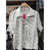 Women White Point Shirts Spring Autumn Middle-Sleeved Casual Cotton-linen V-neck Shirt