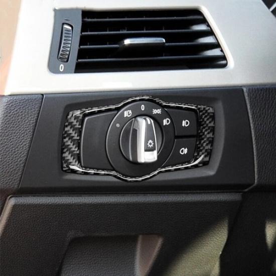 For BMW E90 E92 3 Series Carbon Fiber Car Headlight Switch Decoration Sticker