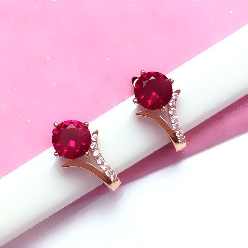 Pure Rose Gold-Plated Women'S Redstone Ear Buckles Are Shiny And Exquisite Diamond-Encrusted Colored Gold Earrings.