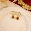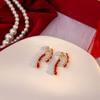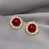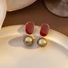 Autumn And Winter Oil Drip Diamond Flower Stud Earrings, French Retro Hong Kong Style Burgundy Round Earrings, Simple Ear Buckles