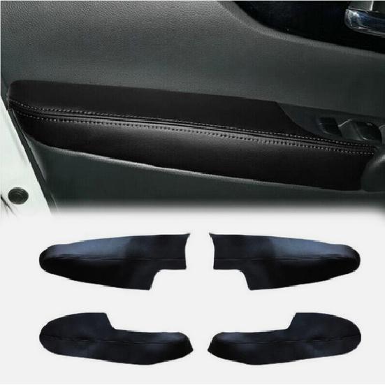 4PCS Black Interior Door Panels Armrest Leather Cover For Nissan Rogue 2014-