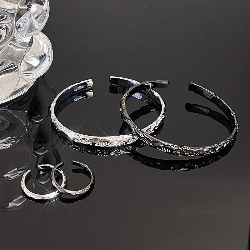 Niche Design Sense Irregular Pleated Plain Ring Open Bracelet Set Personalized Light Luxury High-End Bracelet