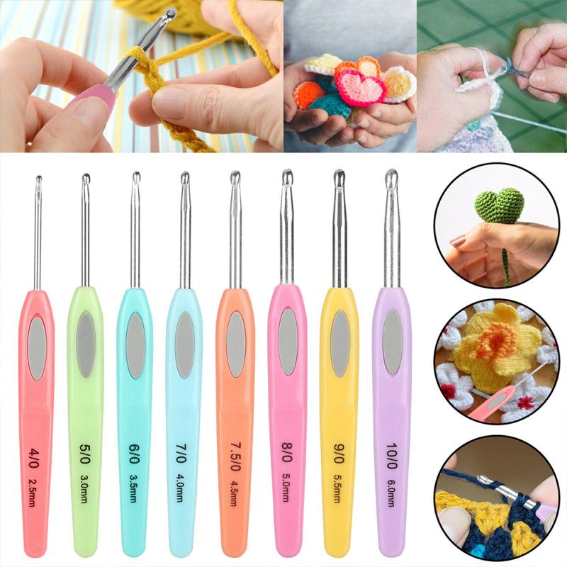8pcs Colorful Crochet Hook Set Marked With Number Aluminum Alloy Ergonomic Design Knitting Needle