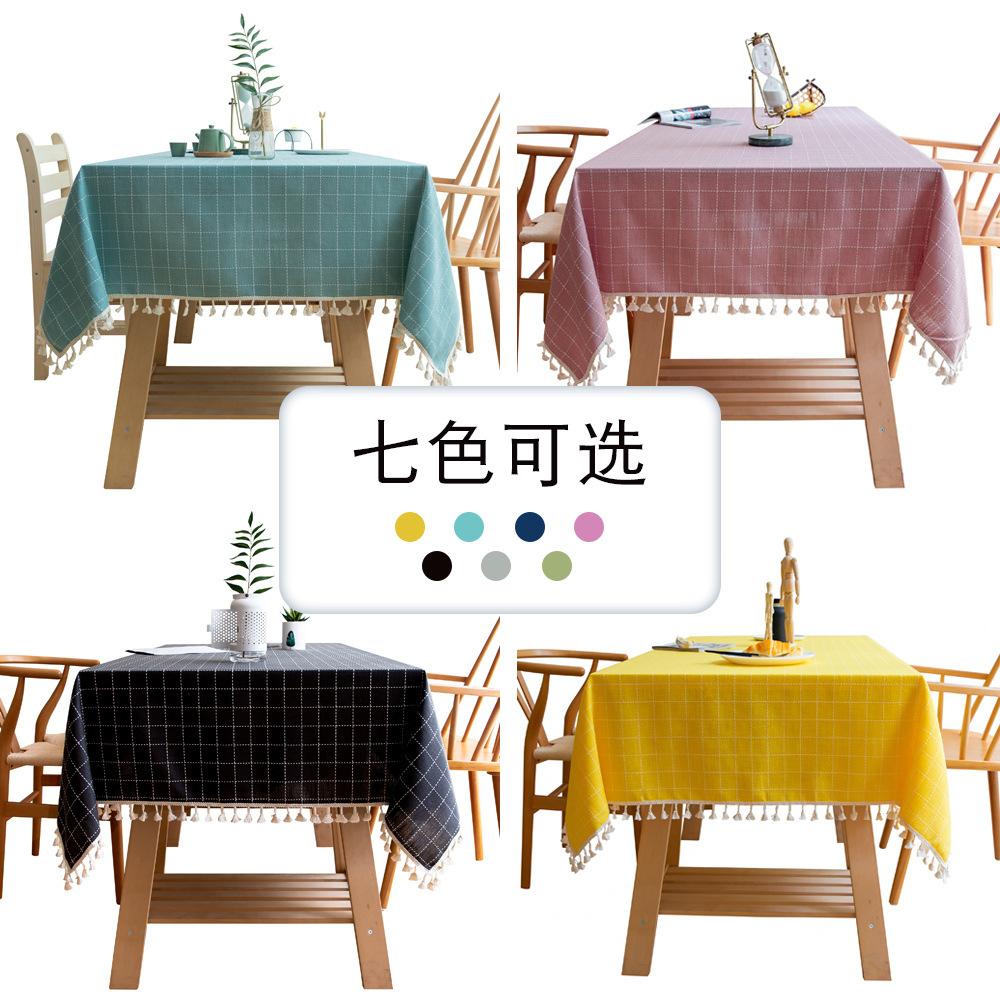 Home Dining Table Cloth Small Fresh Tassel Square Grid Tablecloth Living Room Dining Table Fabric Table Mat