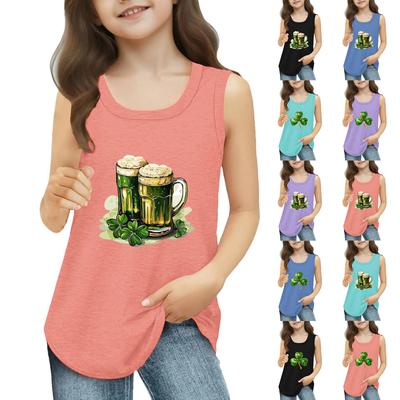 Girls Kids Summer Crewneck Sleeveless Shirts Tank Tops St. Patrick's Day