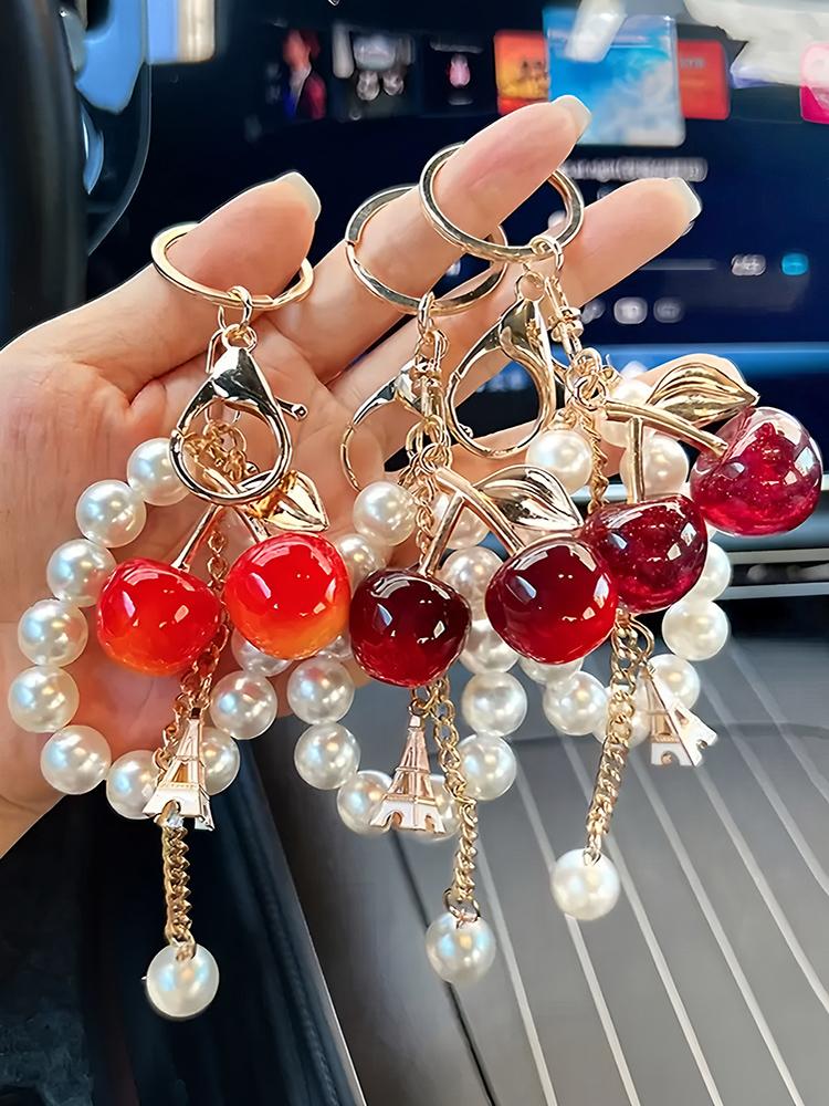 Simulated Cherry Pearl Beads Key Chain Exquisite High-end Bag Pendant Accessory Mother's Day Holiday Gift