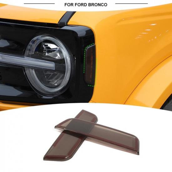 Smoked Black Front Headlight Side Lights Lamp Cover Trims for Ford Bronco +