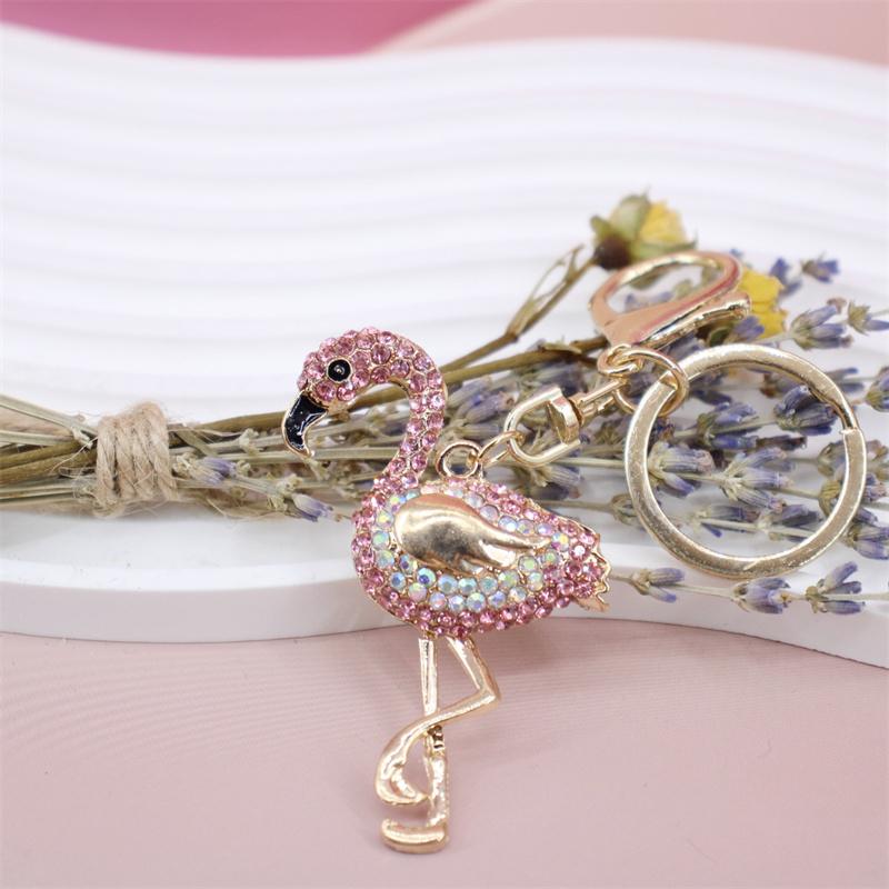 Rhinestone Flamingo Keychain Flamingo Pendant Keychain Rhinestone Crystal Keyring Car Key Chain Key Holder Handbag Purse Charm