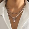 Europe, America, metal chain retro casual collarbone chain, imitation pearl simple beaded necklace choker