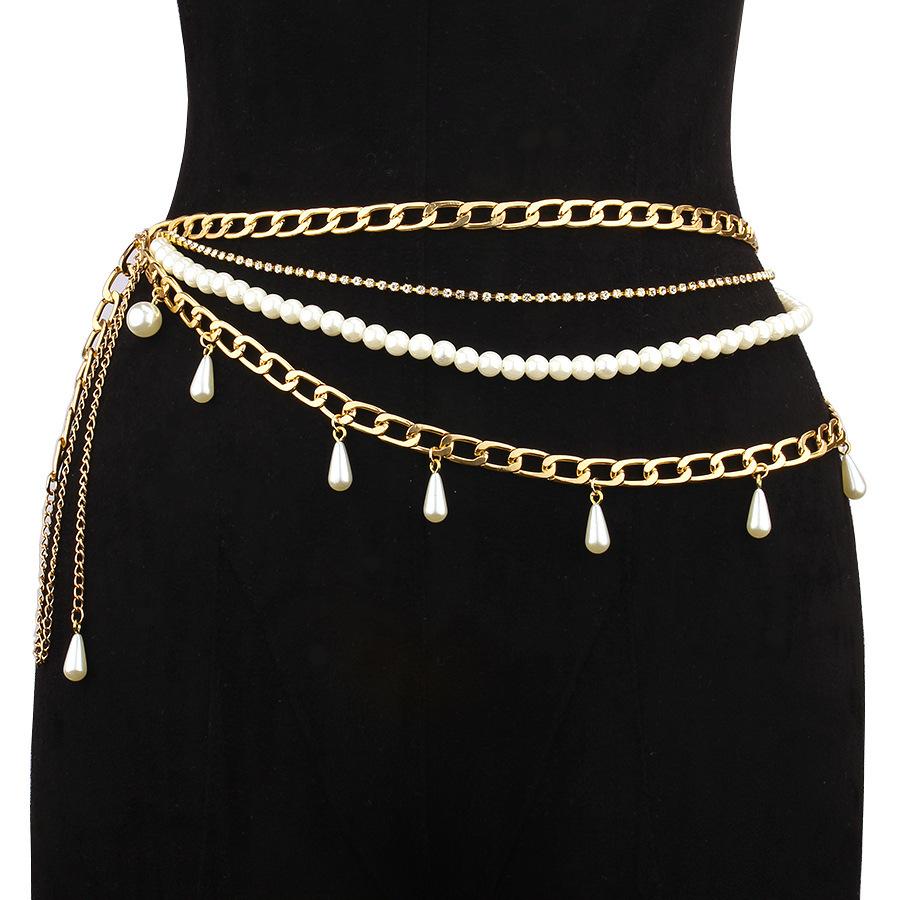 Europe, America, personalized fashion and retro multi-layer imitation pearl waist chain temperament dress accessories