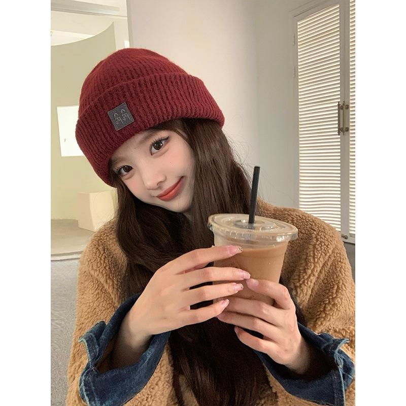 New wool hat women's winter face small ear protectors thickened warm knitted hat big head circumference ankela red cold hat