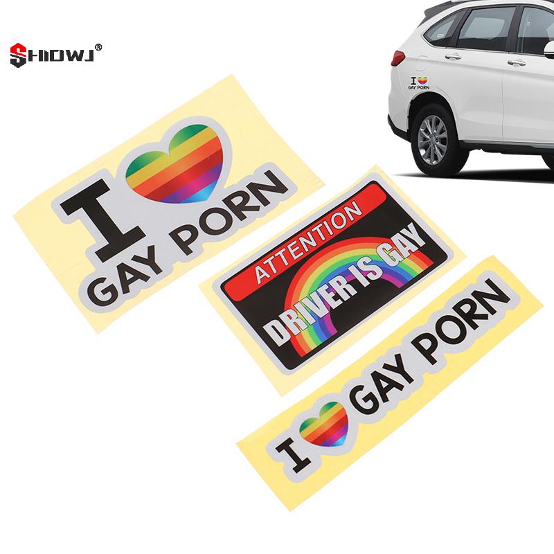 I LOVE GAY PORN Car Stickers Funny LGBTQ Rainbow Decoration Warning Reflective Decal Personality Trunk Bumper Sticker