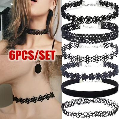 Σετ 6 Τεμαχίων Μαύρα Δαντελωτά Chokers Κολιέ Σετ Vintage Γοτθικό Punk Ελαστικό Κολιέ Γυναικεία Κοσμήματα Μέγεθος Ενήλικα/Παιδικό
