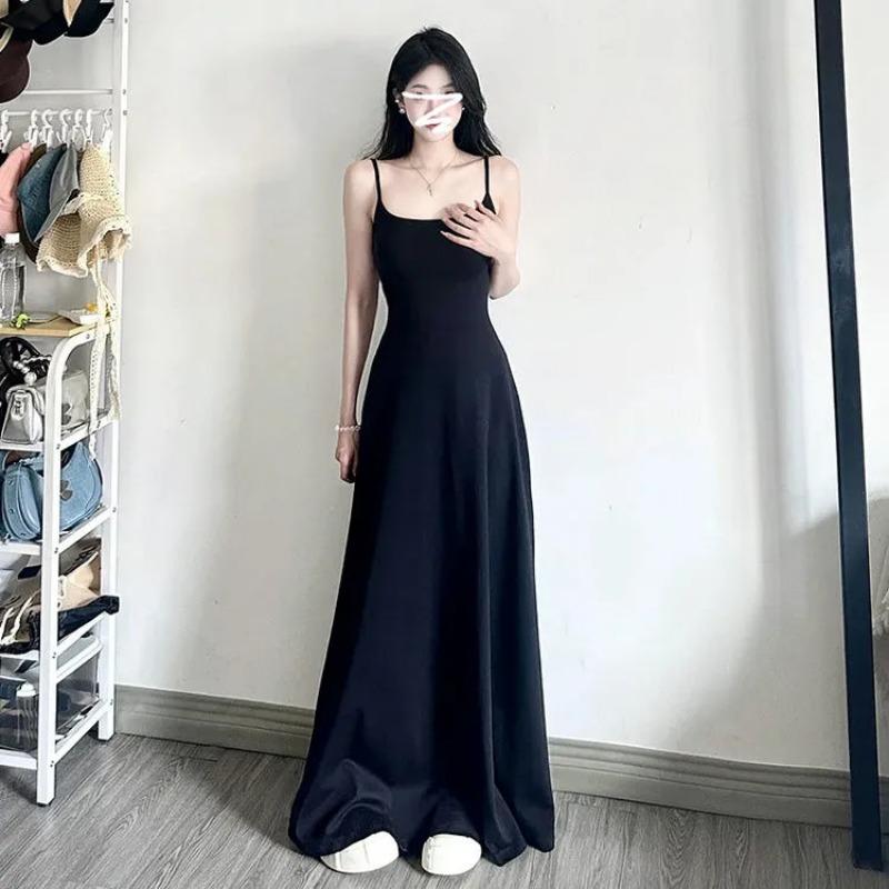 Black Temperament Long Suspender Dress Sweet Hot Girl Fashion Casual New Slim Hip Skirt