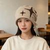 Face showing Little Star Woolen Knitted Hat for Women in Autumn and Winter Warm Ear Protection Headband Hat with Big Head Circumference for Cold