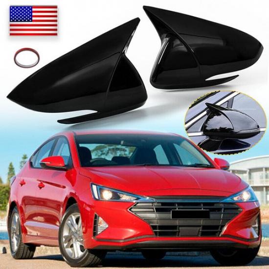 Gloss Black Rear View Side Door Mirror Cover Trim For Hyundai Elantra 2016-