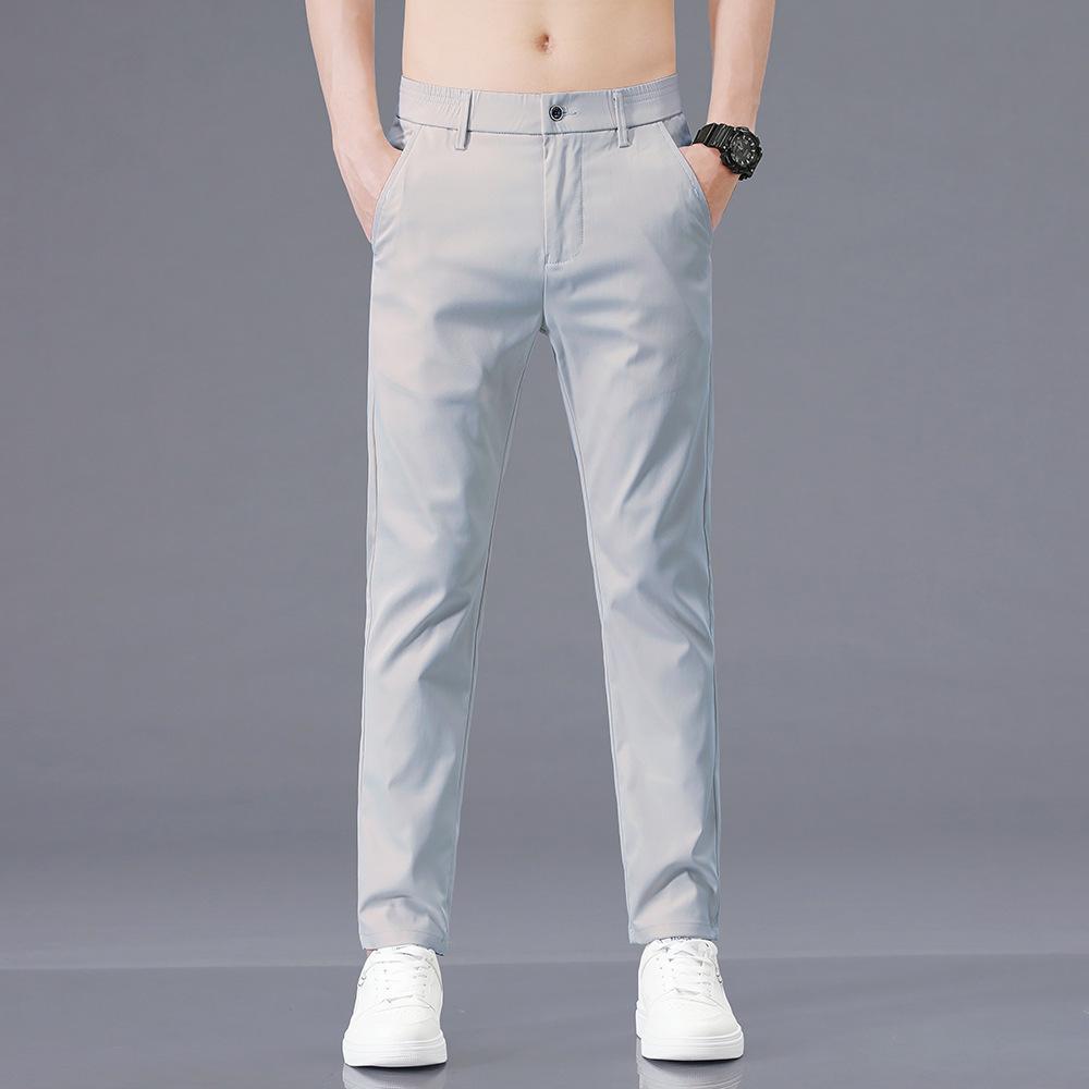 Ice-Silk Men's Casual Trousers Men's Long Trousers Loose Straight-Leg Korean-Style Slim-Fit Trendy Men's Summer Lightweight Suit Trousers