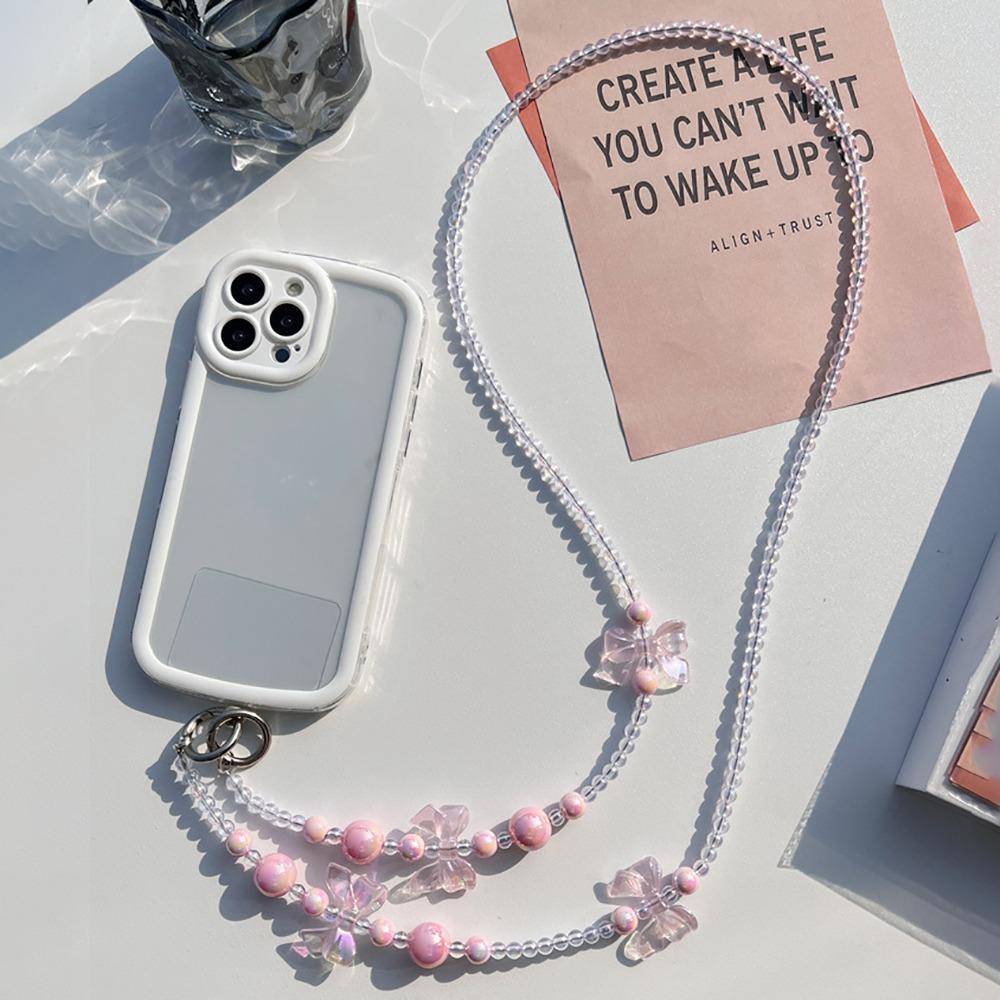 Cute Bowknot Beaded Bowknot Phone Strap Anti-lost Universal Beaded Phone Lanyard Hanging Decoration Wallet Chain Phone