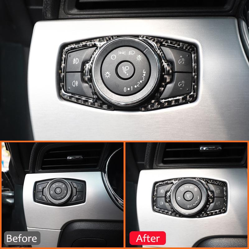 For Ford Mustang 2015- Carbon Fiber Car Headlight Control Switch Panel Trim Frame Decoration Sticker Interior Accessories
