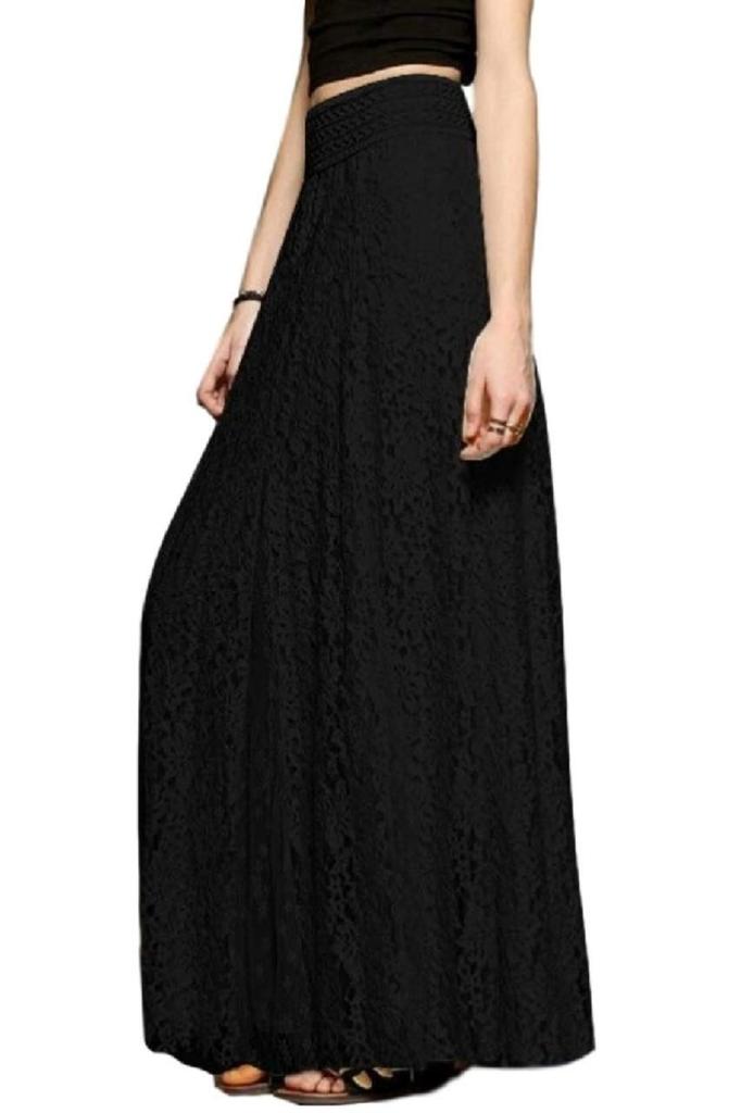 (PlaisteL) Women's Maxi Lace Long Skirt with Floral Embroidery, All-Lace, High Waist, Plus Sizes Available