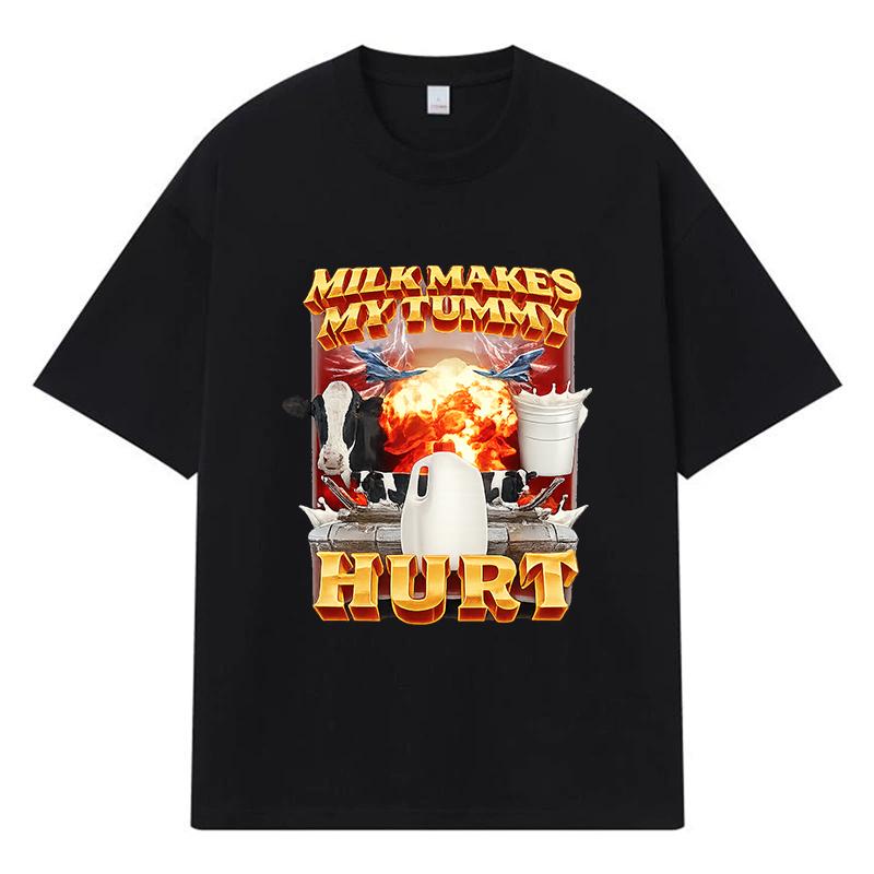 2026 Milk Makes My Tummy Hurt Printed Graphic Y2k Harajuku Streetwear 100% Cotton T Shirt Casual Oversized Summer Men T-shirt