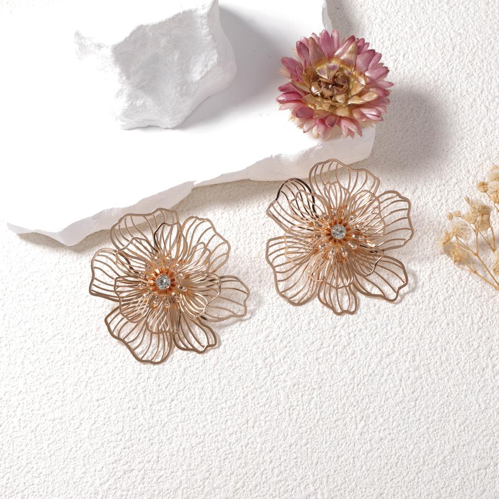 Bohemian personality retro trend metal hollow flower stud earrings creative unique senior design sense