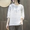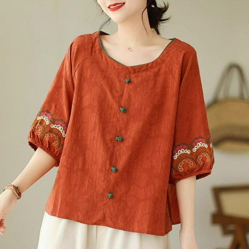 Mother Cotton and Linen Half-sleeved Embroidered Blouse Loose Fashion Western Style Short-sleeved T-shirt Women's Summer Women's Clothing