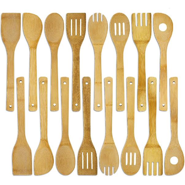 Package includes 16 pieces of well-designed bamboo wooden kitchen utensils, including 8 kinds of diverse spoons and spatula (shovel), which can satisfy your different cooking needs. Product measures approx. 11.8" length x 2.3" width