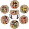Drink Coasters with Holder,6 Pcs Moon Phases Absorbent Ceramic Coasters with Cork Base,Cute Funny Table Drinks Coasters,Table Home Decor,4 Inches