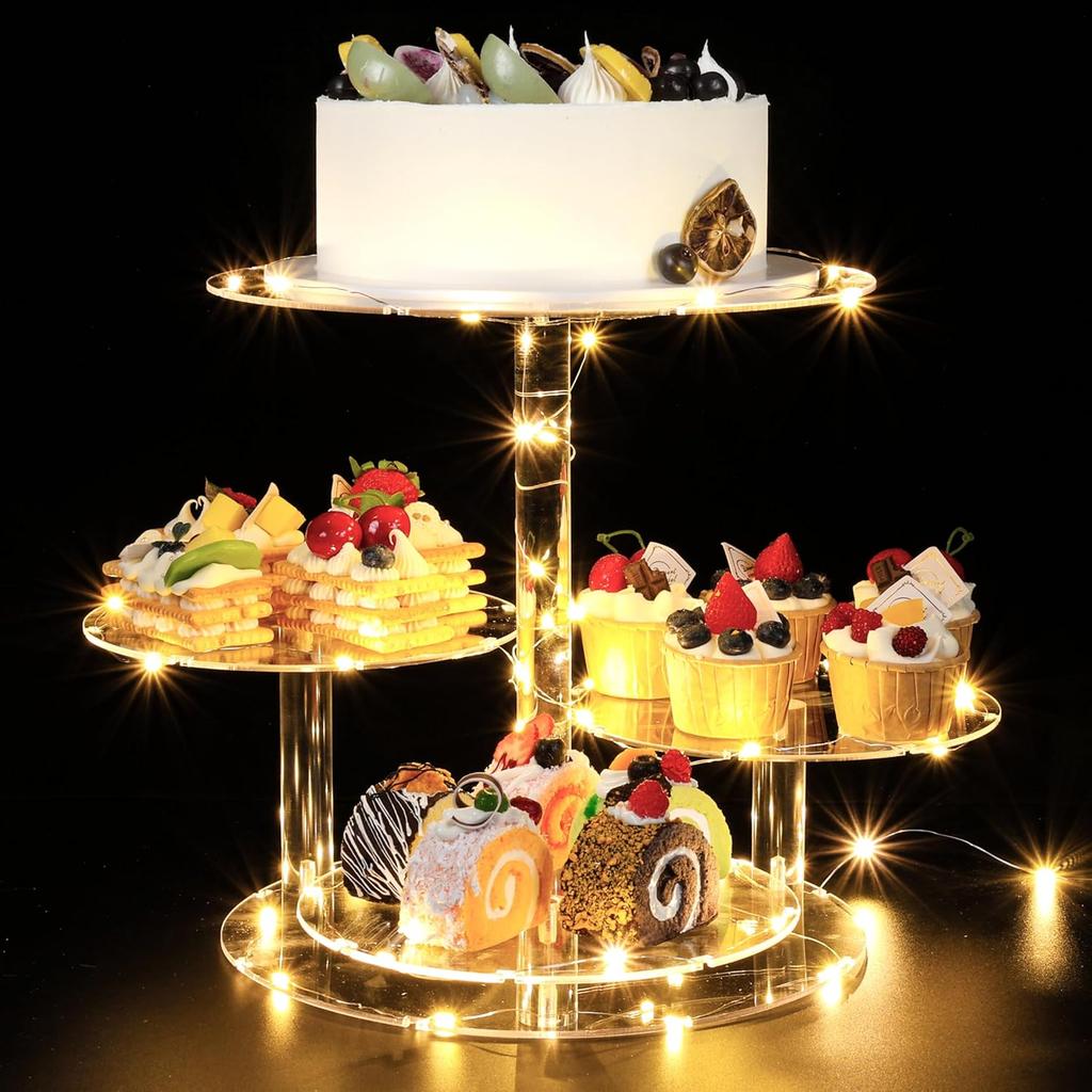4 Tier Round Acrylic Cake Stand Cupcake Stand Tower Holder with LED Light Dessert Pastry Display Stand for Birthday Wedding Graduation Party Baby