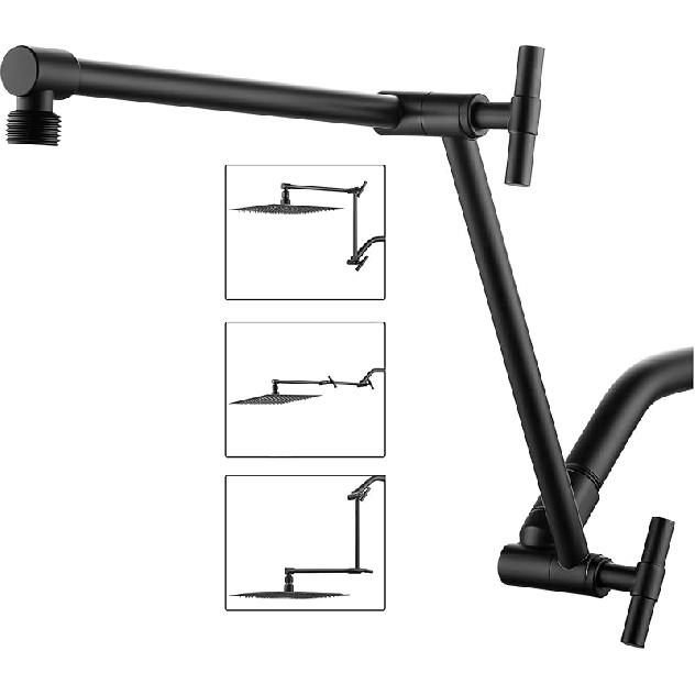 Shower Head Extension Arm - 13'' Shower Arm Extension for Rain & Handheld Shower Head, Height and Range Adjustable, Shower Extension Arm with Locking