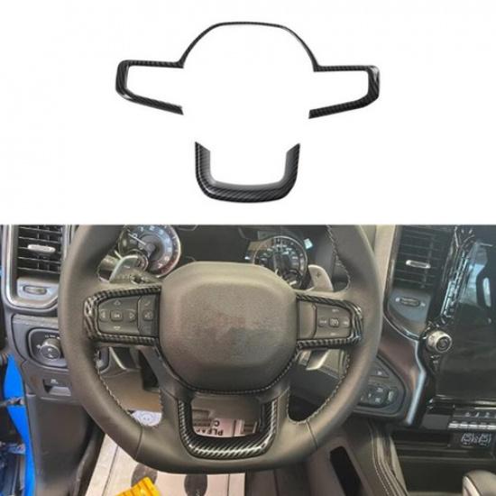 For Dodge Ram 1500 TRX 2022 2023 Carbon Fiber Steering Wheel Decor Cover Trim