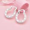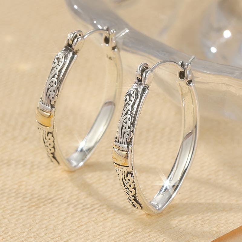 Vintage Hand Carved Texted Silvery Plated Hoop Earrings for Women's Exquisite Party Vacation Jewelry Accessories Crafts