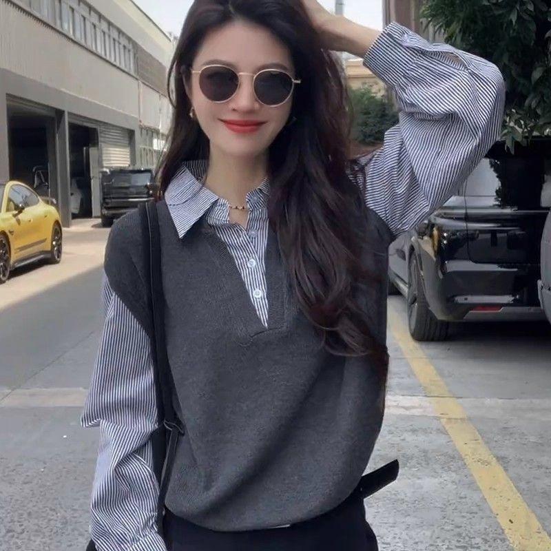 Simple Style Knitted Patchwork Pullover Shirt for Women in Winter, New Style, Slim-fitting, Flattering, Stylish and Versatile Top.