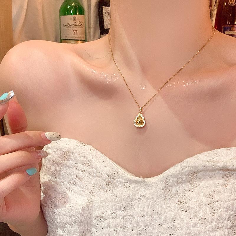 Guofeng gourd pendant, titanium steel necklace, women's light luxury design, exquisite collarbone chain, neck chain accessories