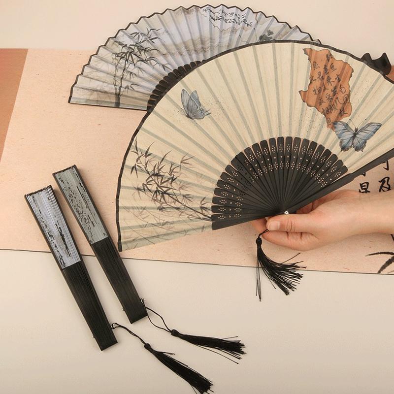5Styles Retro Style Folding Fan Female Japanese Pattern Retro Cloth Art Craft Gift Home Decoration Ornament Dancing Hand Fan