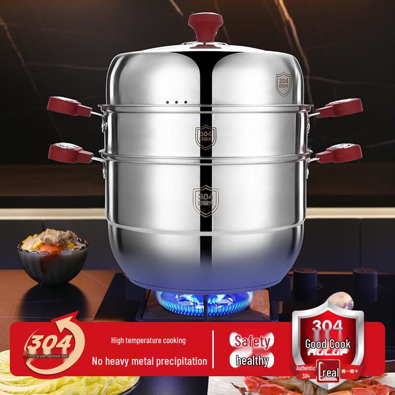 HOCUF 304 Stainless Steel 3-Layer Steamer Pot