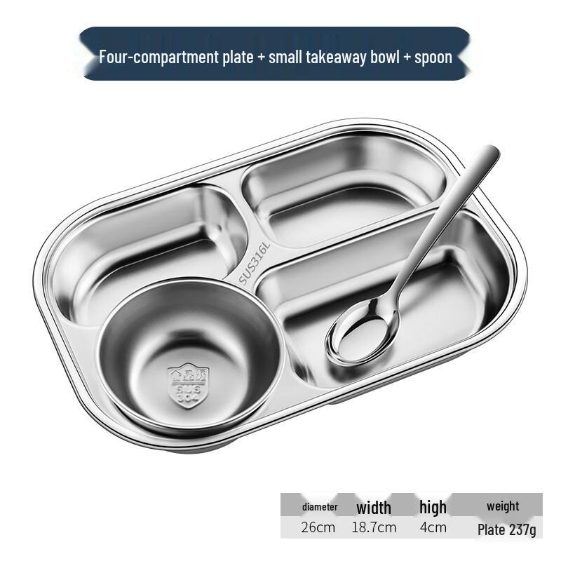 316L Stainless Steel 4-Compartment Lunch Plate