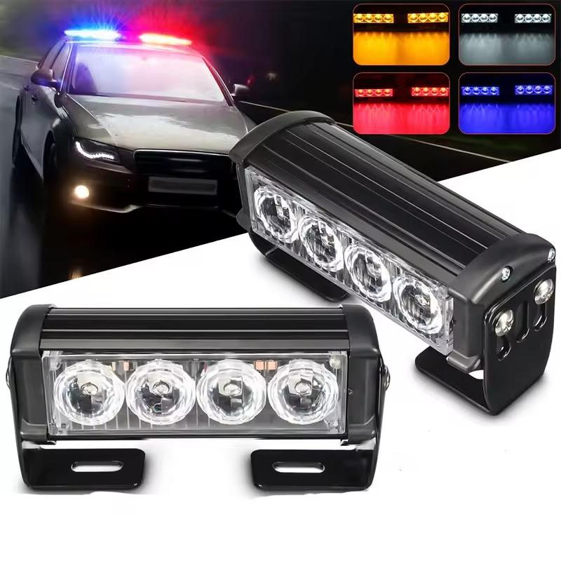 4LED One Drag Two Strobe Middle Net Warning Light 8LED Strobe Lamp One Drag Two Long Bumper Light Opening