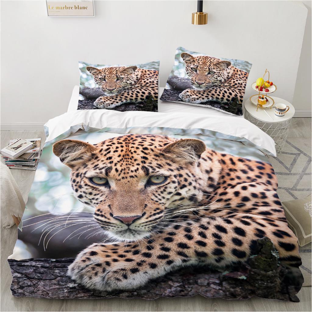 Animal Print Duvet Cover Set Leopard 3D Bed Linen Twin/Queen/140x200,Ultra-Soft Polyester Bedding, Machine Washable Home Decor