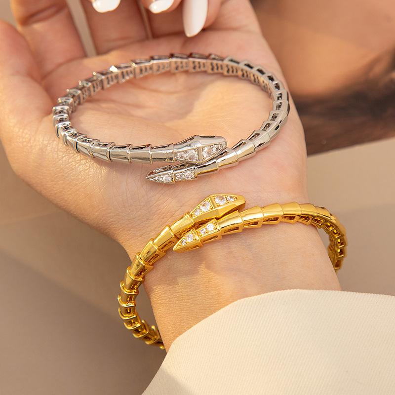 High version head and tail drill snake bone spring bracelet women's spring open bracelet 18K gold bracelet