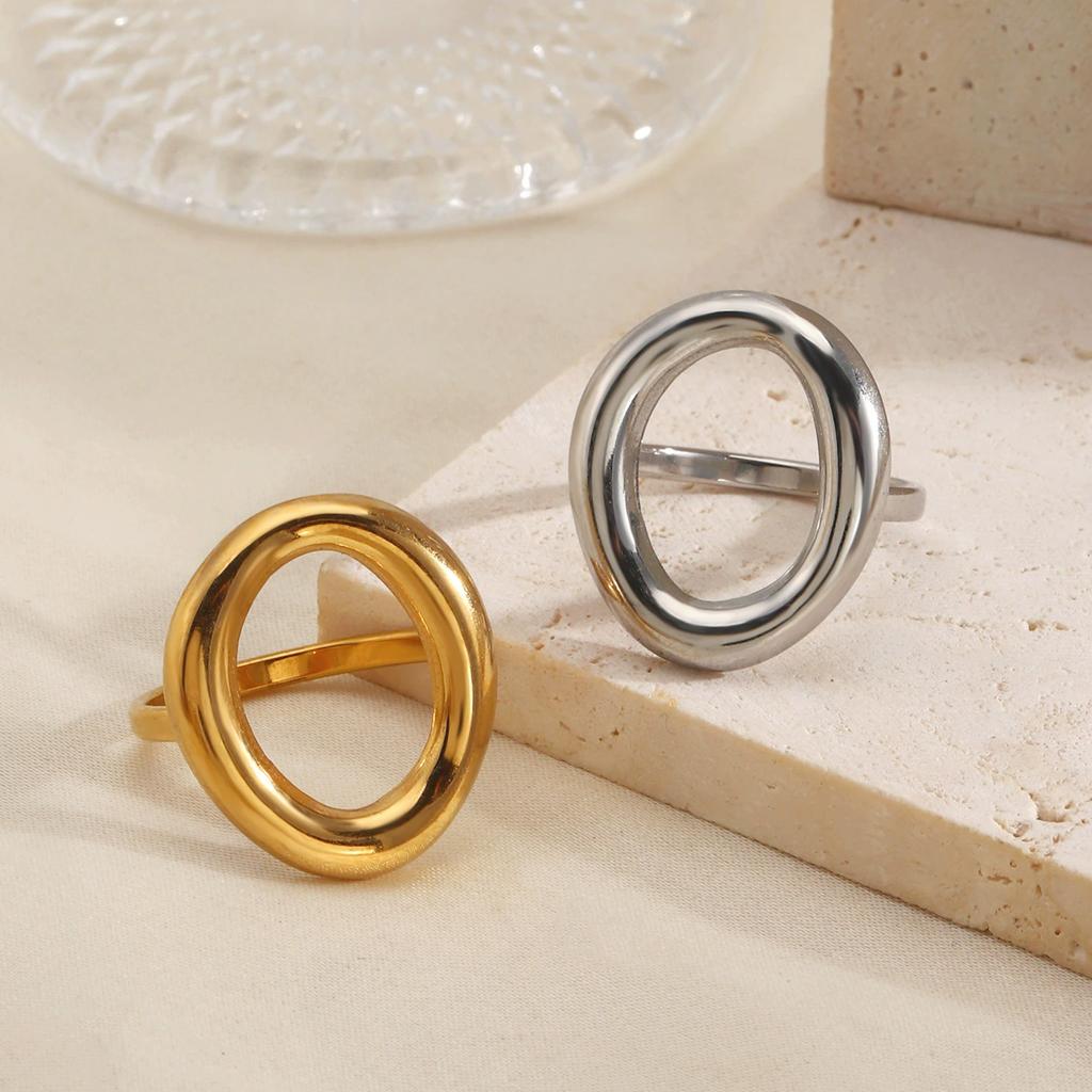 Stainless Steel Exaggerated Geometric Hollow Rings For Women Vintage Punk Gold Color Chunky Open Finger Ring Fashion